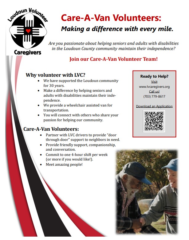 If you want to make a difference by becoming a Volunteer Care-A-Van Assistant, we would love to hear from you! Call our office today at 703-779-8617 and join us in helping our neighbors in the Loudoun community.